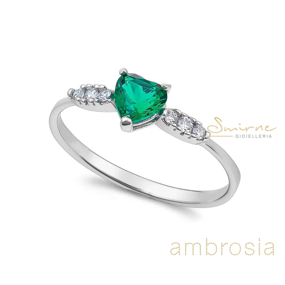 Anello donna Ambrosia con cuore verde smeraldo AAZ 149