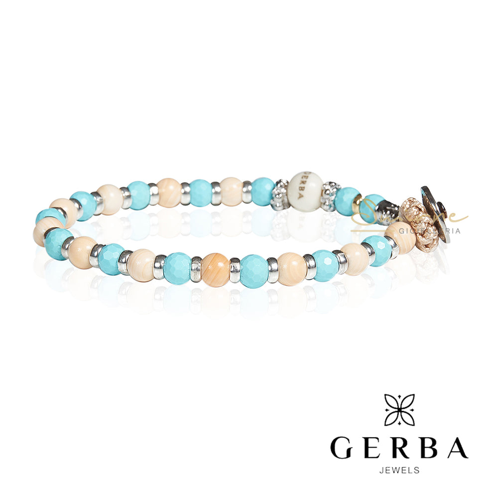 Bracciale uomo in pietra naturali con inserti in argento, realizzato interamente a mano, con elastico.