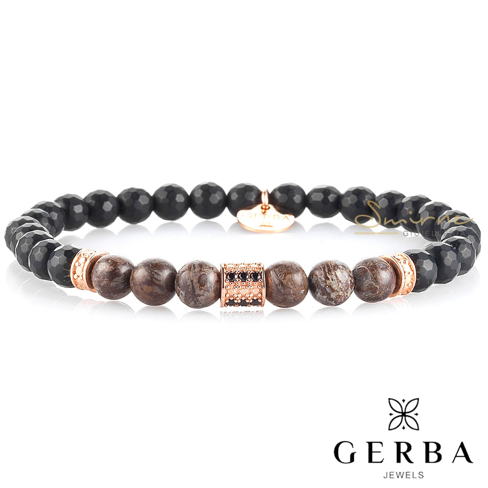 Bracciale uomo in pietra naturali con inserti in argento, realizzato interamente a mano, con elastico.