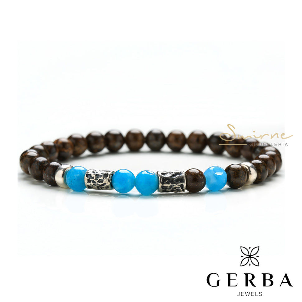 Bracciale uomo in pietra naturali con inserti in argento, realizzato interamente a mano, con elastico.