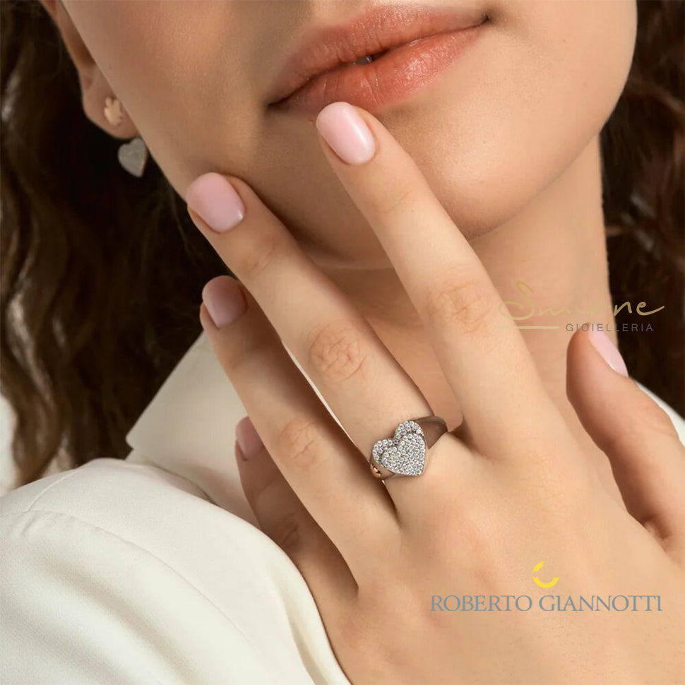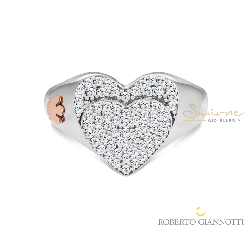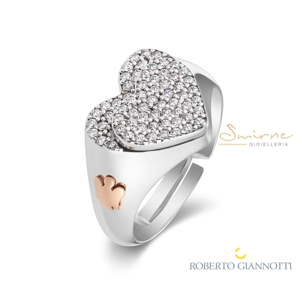 con doppio cuore con zirconi bianchi e angelo in argento rosa, segno di protezione e amore perfetto per ogni occasione