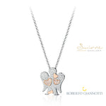 con angelo in argento bianco con cuori rosati con zirconi bianchi