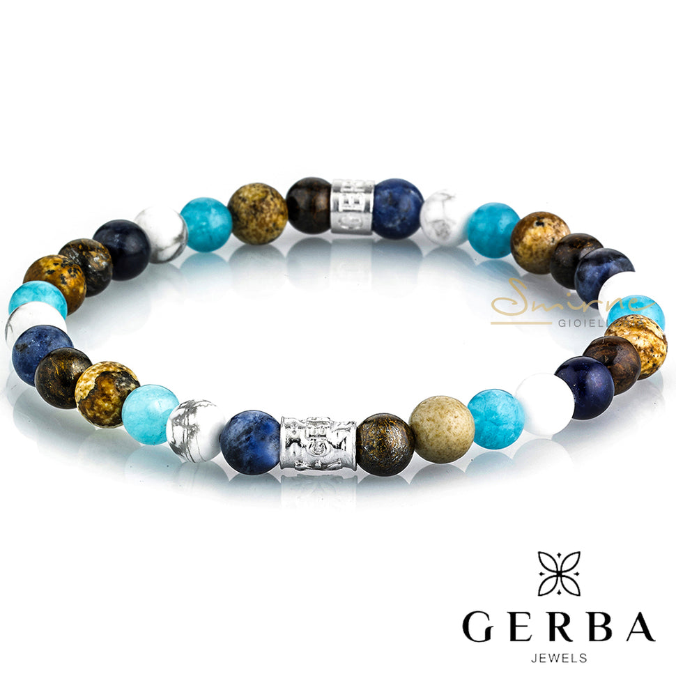 Bracciale uomo in pietra naturali con inserti in argento, realizzato interamente a mano, con elastico.