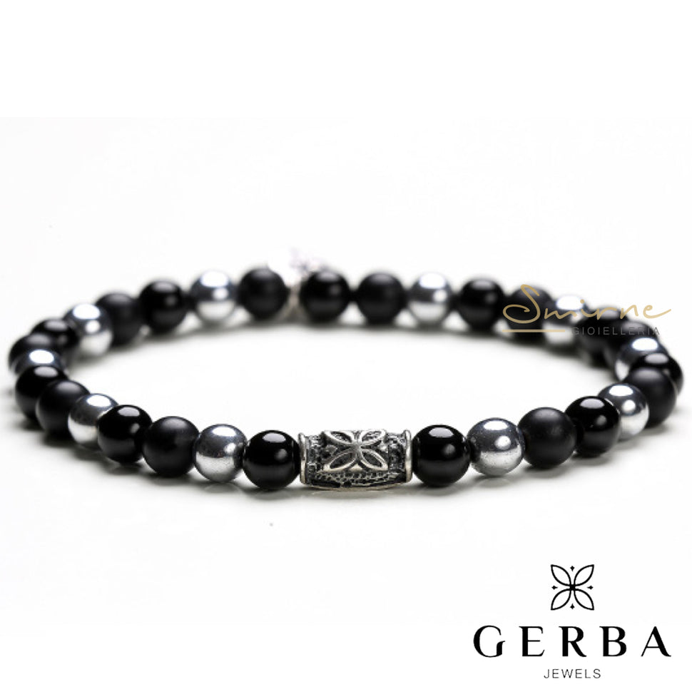 Bracciale uomo in pietra naturali con inserti in argento, realizzato interamente a mano, con elastico.