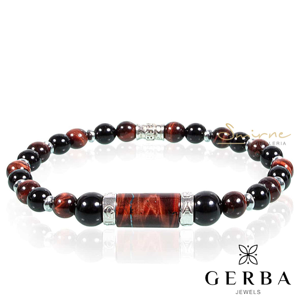 Bracciale uomo in pietra naturali con inserti in argento, realizzato interamente a mano, con elastico.