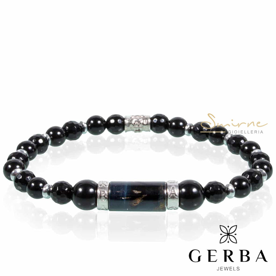 Bracciale uomo in pietra naturali con inserti in argento, realizzato interamente a mano, con elastico.