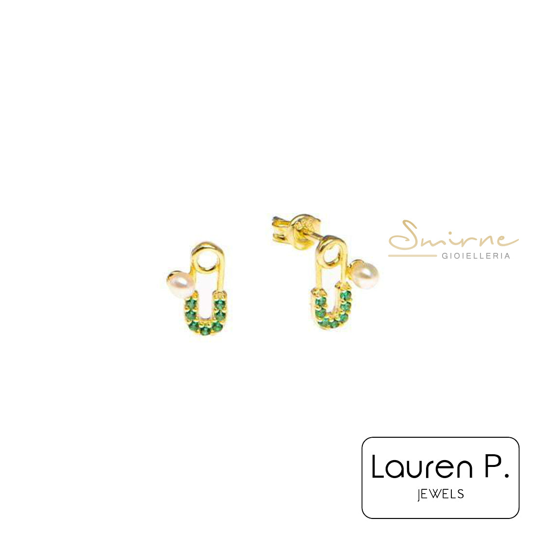 Orecchini spilla da balia con pietre verde smeraldo Lauren p