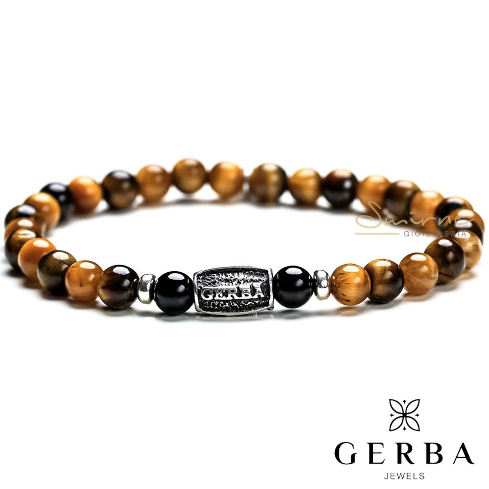 Bracciale uomo in pietra naturali con inserti in argento, realizzato interamente a mano, con elastico.