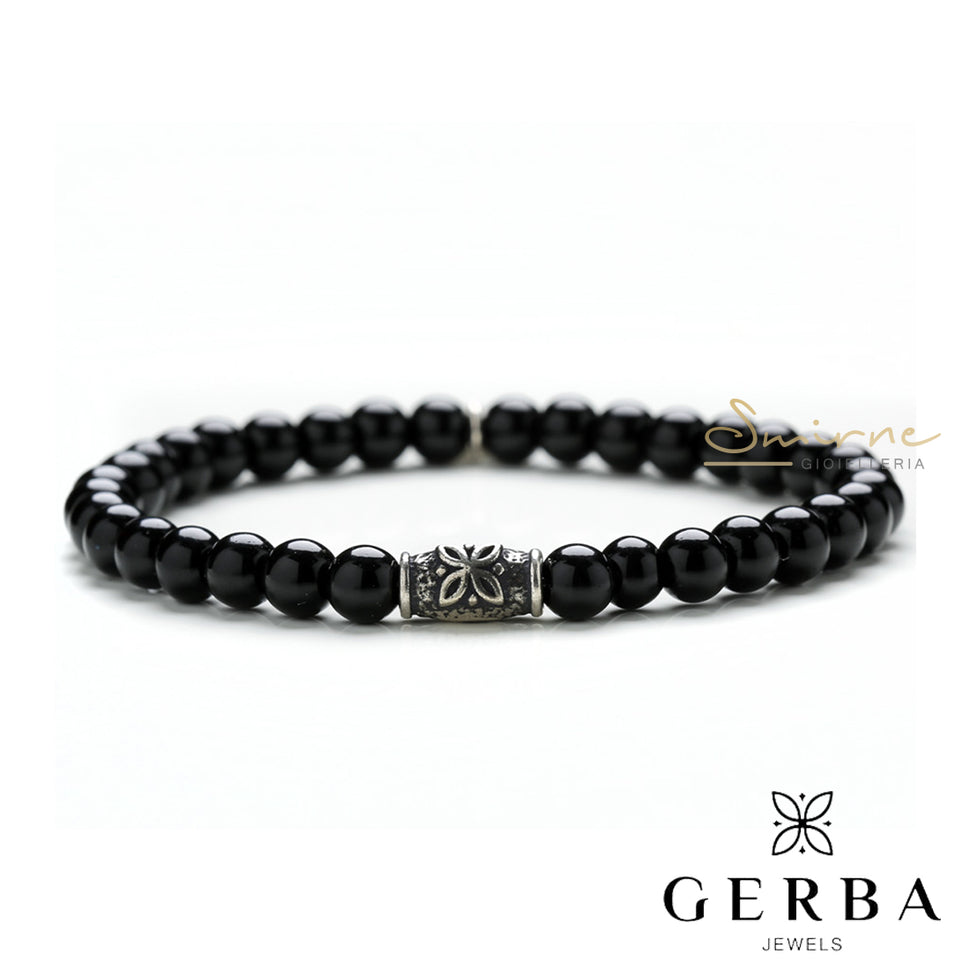 Bracciale uomo in pietra naturali con inserti in argento, realizzato interamente a mano, con elastico.