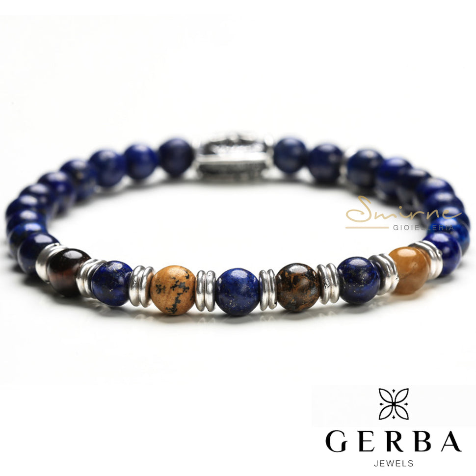 Bracciale uomo in pietra naturali con inserti in argento, realizzato interamente a mano, con elastico.
