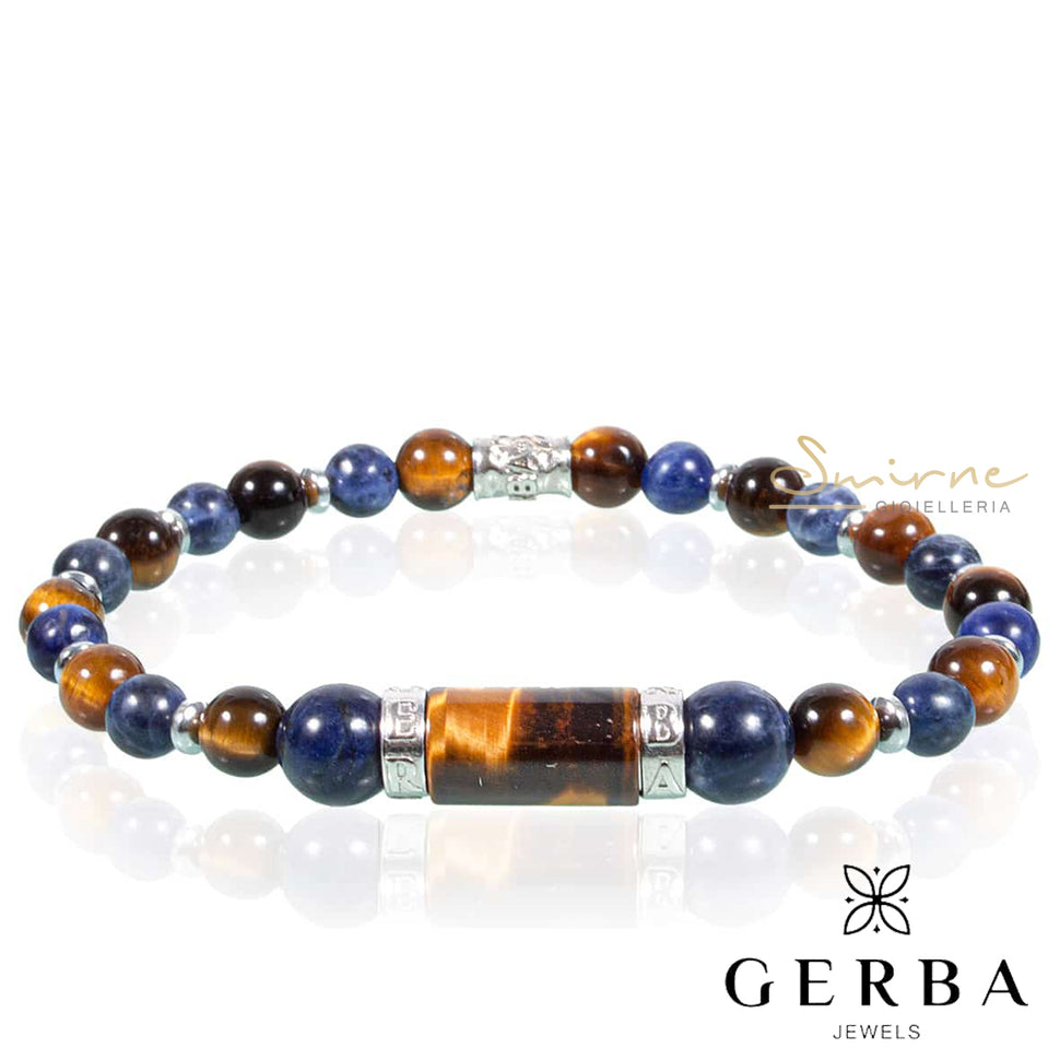 Bracciale uomo in pietra naturali con inserti in argento, realizzato interamente a mano, con elastico.