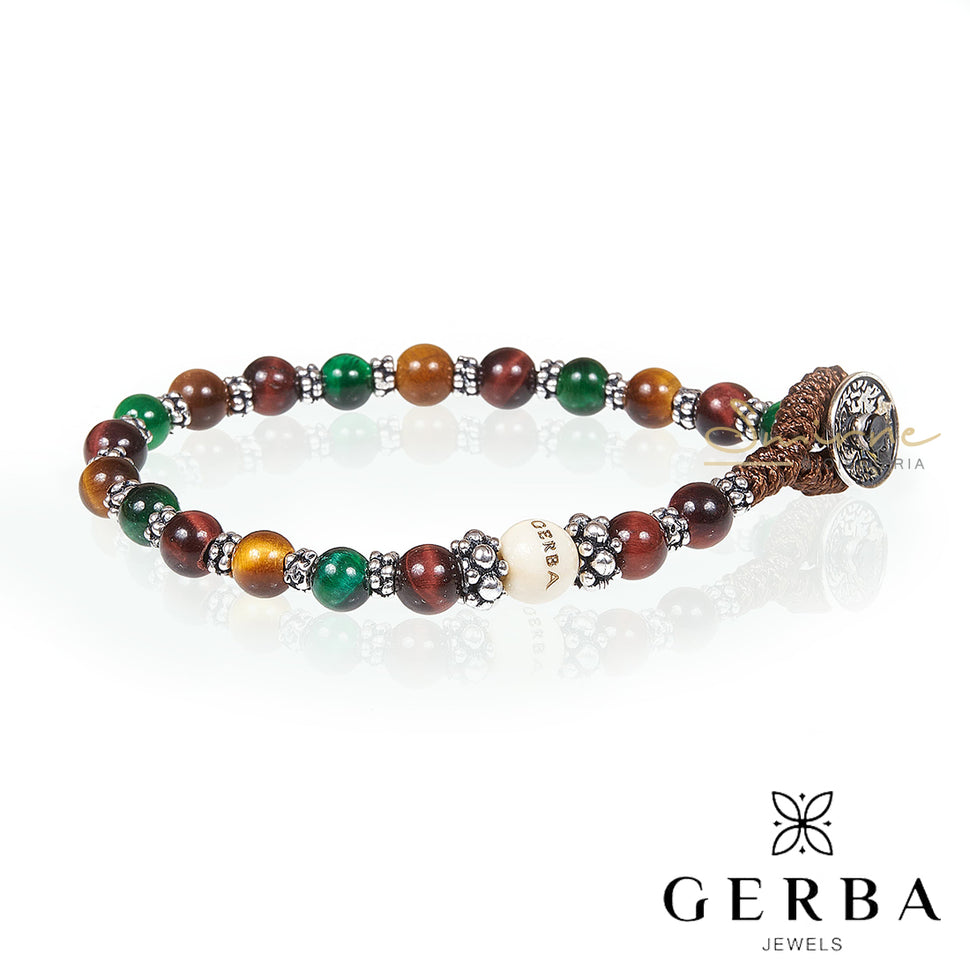 Bracciale uomo in pietra naturali con inserti in argento, realizzato interamente a mano, con elastico.