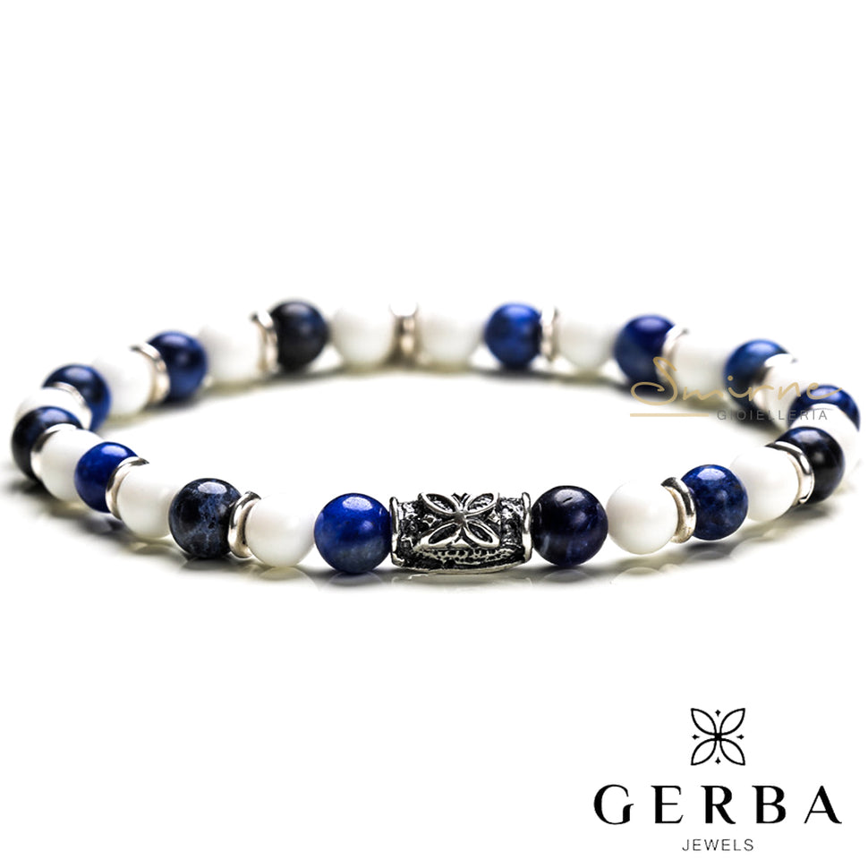Bracciale uomo in pietra naturali con inserti in argento, realizzato interamente a mano, con elastico.