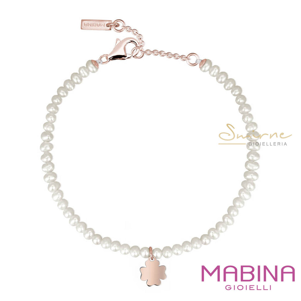 Bracciale perle con quadrifoglio rose Mabina