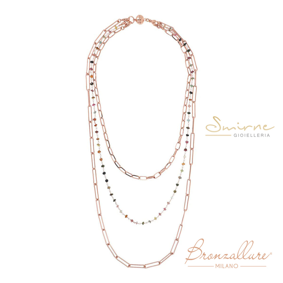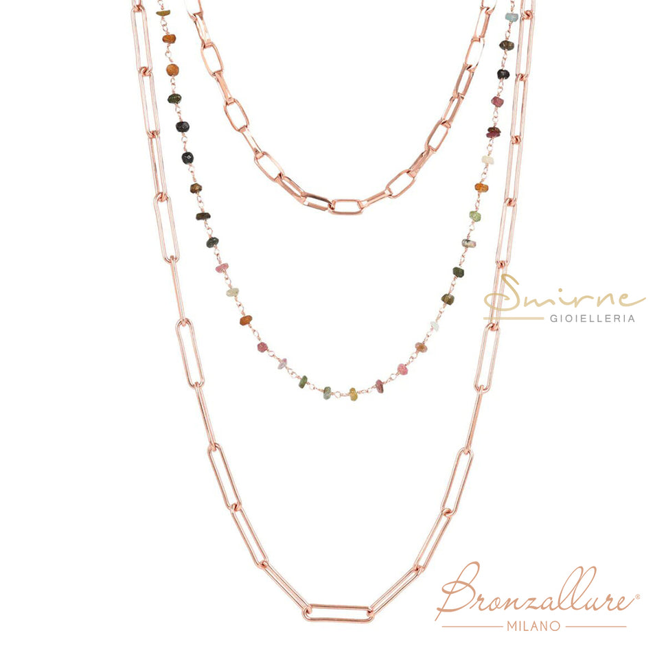 Collana multifilo realizzata in lega Golden Rosé placcata in oro rosa 18 kt