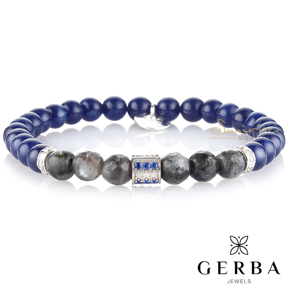 Bracciale uomo in pietra naturali con inserti in argento, realizzato interamente a mano, con elastico.