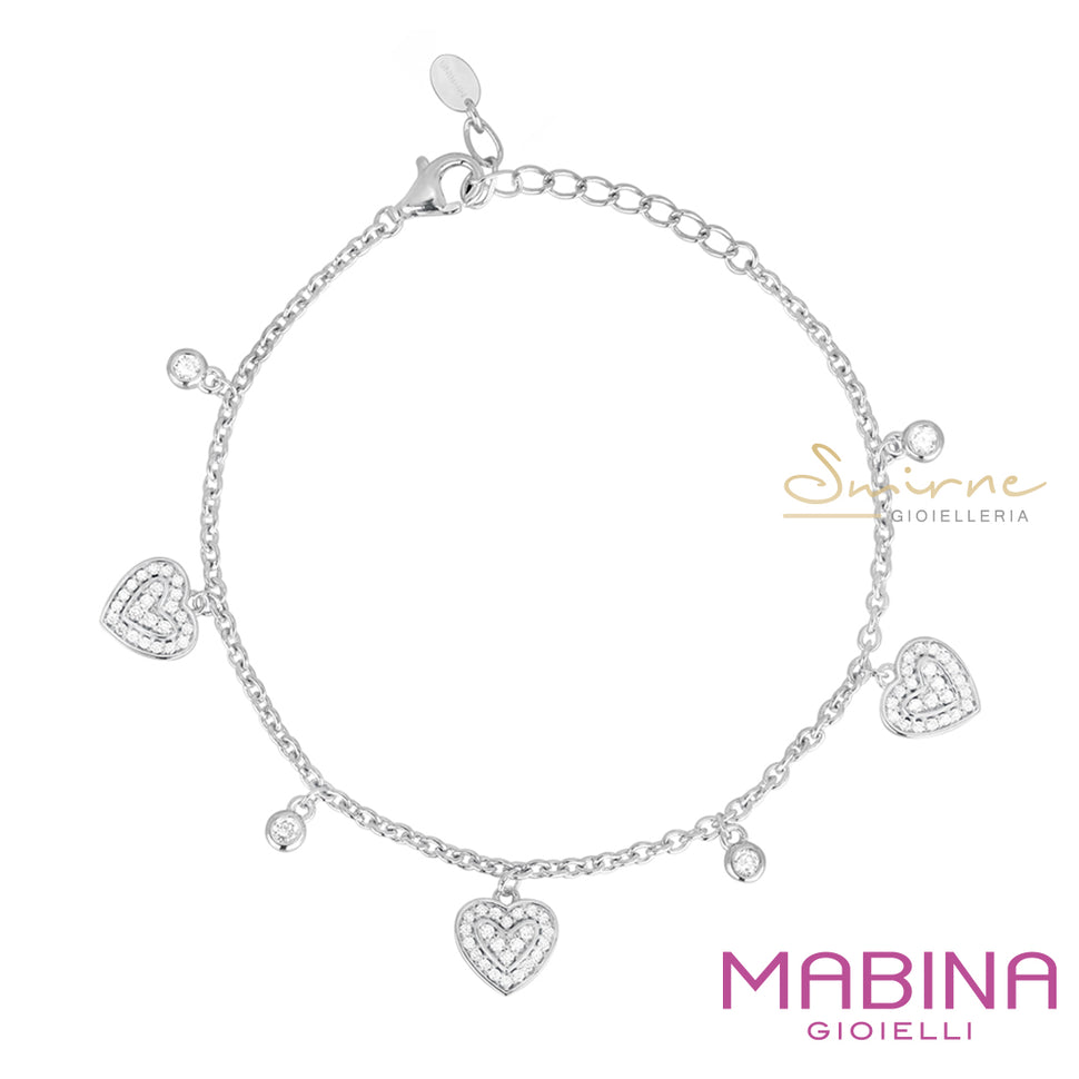 - Pendente a cuori con zirconi bianchi taglio brillante alternati da una catena argento