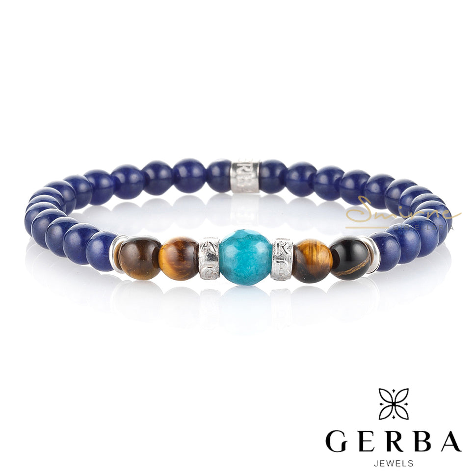 Bracciale uomo in pietra naturali con inserti in argento, realizzato interamente a mano, con elastico.