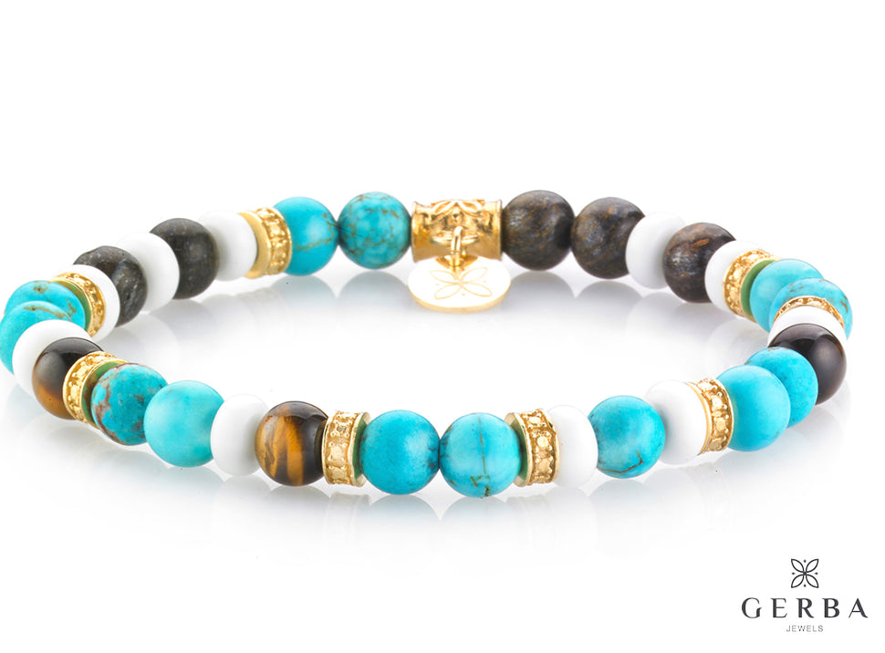 bracciale uomo in pietra naturali con inserti in argento, realizzato interamente a mano, con elastico.