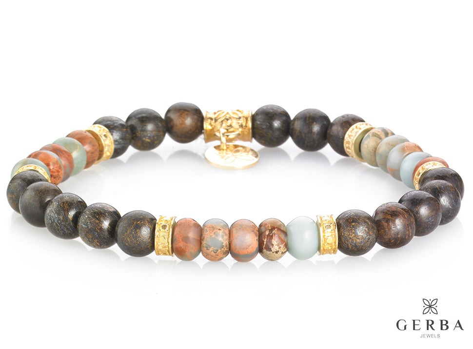 bracciale uomo in pietra naturali con inserti in argento, realizzato interamente a mano, con elastico.